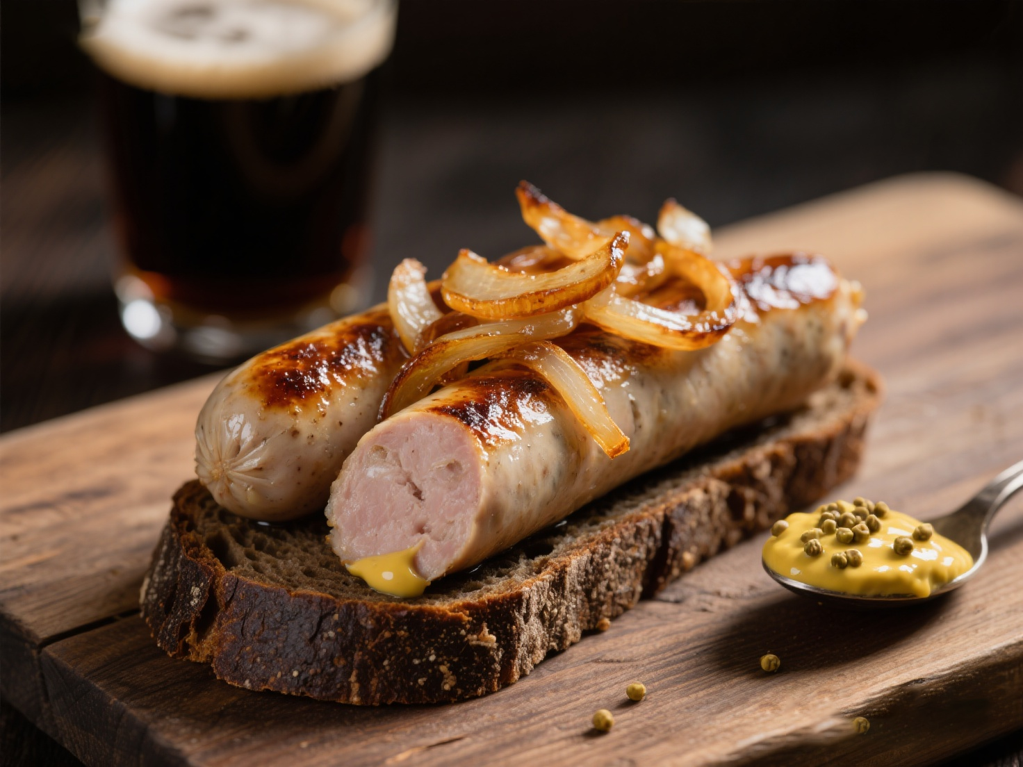 ④ 享用: 務(wù)必搭配一大碟辛辣的芥末醬。切一塊腸,連同洋蔥和面包一起放入口中,再佐一口冰鎮(zhèn)的德國黑啤或烈性艾爾啤酒,風(fēng)味最是地道。