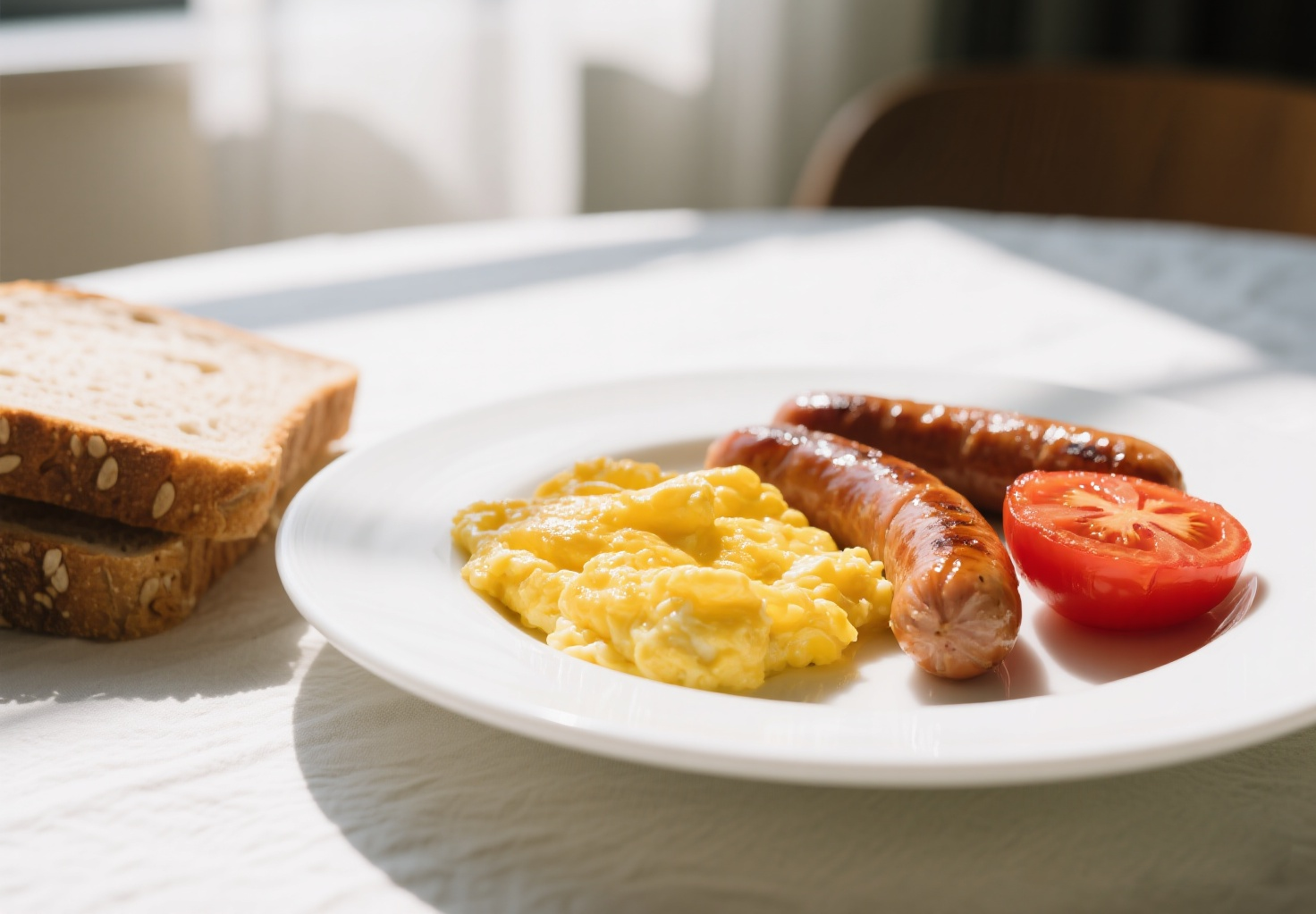 特點(diǎn):搭配炒蛋和烤番茄,奶酪香腸提供優(yōu)質(zhì)蛋白,開啟滿足感十足的一天。