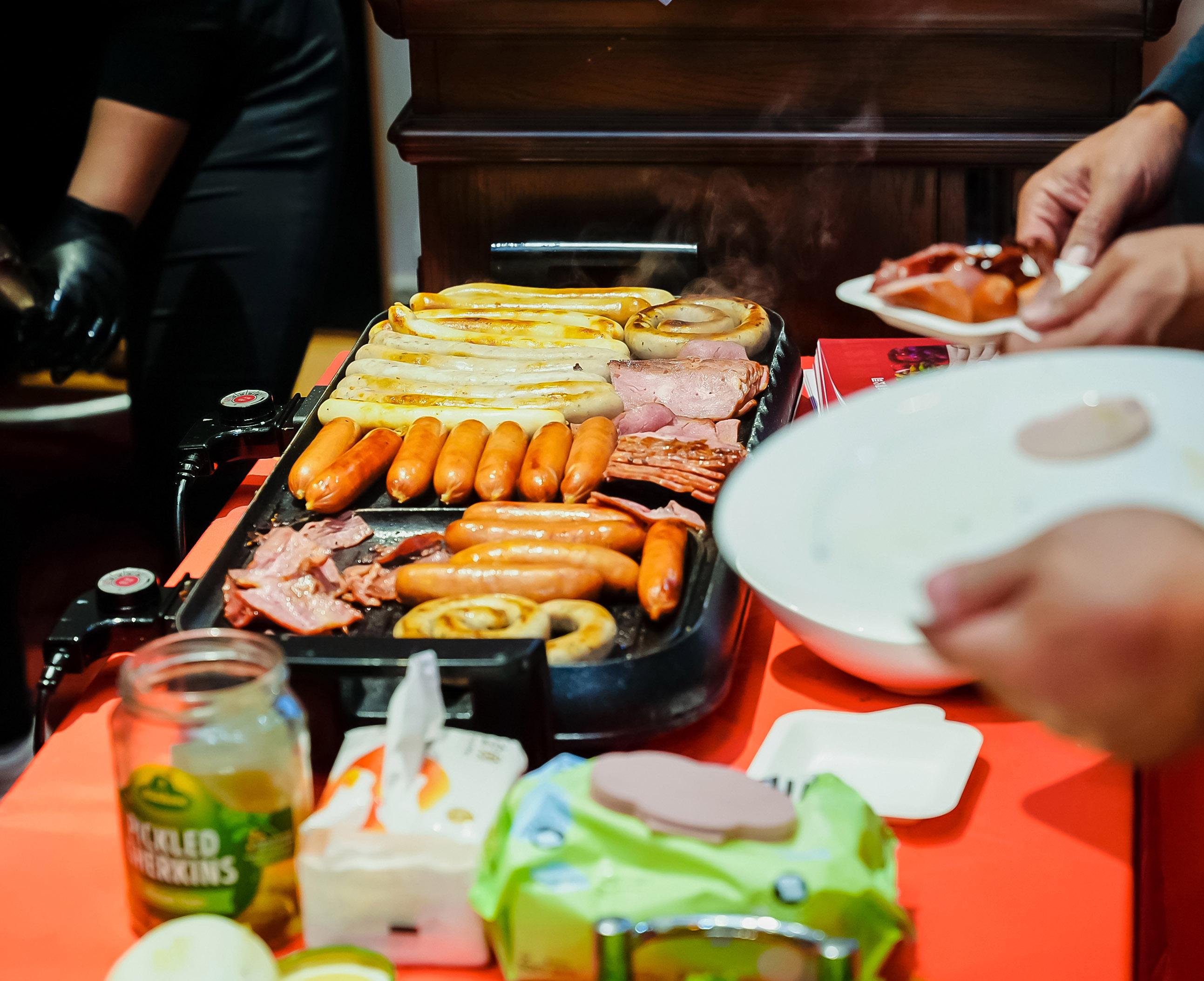 剛剛結(jié)束比賽的運(yùn)動(dòng)員、忙碌的工作人員與興致勃勃的游客們紛紛被吸引至我們的展位。大家品嘗到熱騰騰、肉汁飽滿的香腸與焦香適宜的培根,更可現(xiàn)場購買,將這份便捷與美味帶回家。我們的展位前一度排起長隊(duì),成為了市集中一道亮麗的風(fēng)景線和溫暖的補(bǔ)給站。